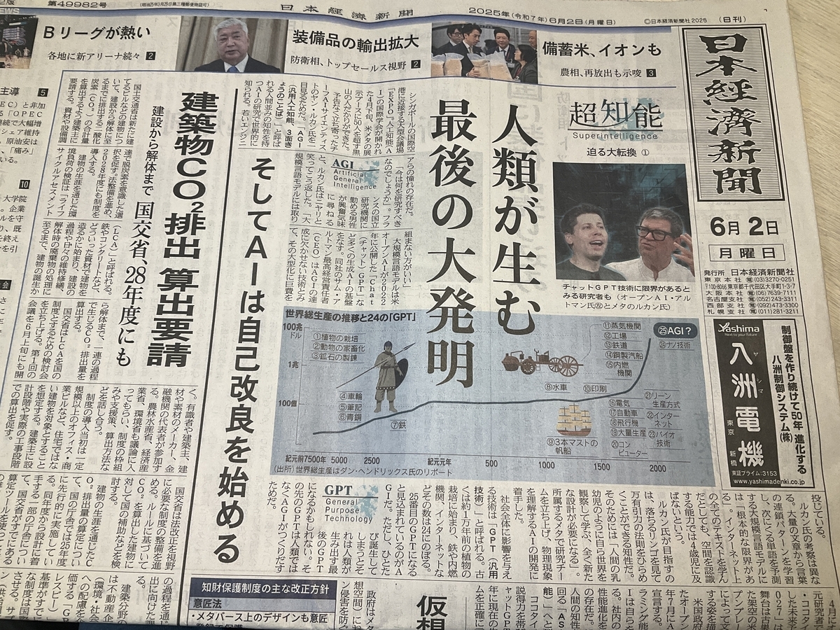 今日の日経新聞の一面に記事が載っている。